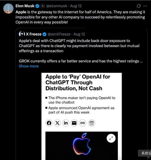 - On August 12, Elon Musk launched a public feud, accusing Apple of bias in its App Store rankings, allegedly favoring OpenAI’s ChatGPT while suppressing his own products X and Grok. The controversy significantly boosted X’s visibility and downloads, which rose 25% MoM, propelling it from 37th place into the Top 20.