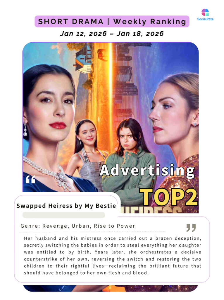 Additionally, the series has launched multiple versions globally. According to SocialPeta, the drama has a total of 8 versions currently airing. In the past week, the version targeting Europe and North America, Swapped Heiress by My Bestie, has generated the highest number of creative materials. This week alone, the total estimated impressions for this series have already surpassed 20 million.