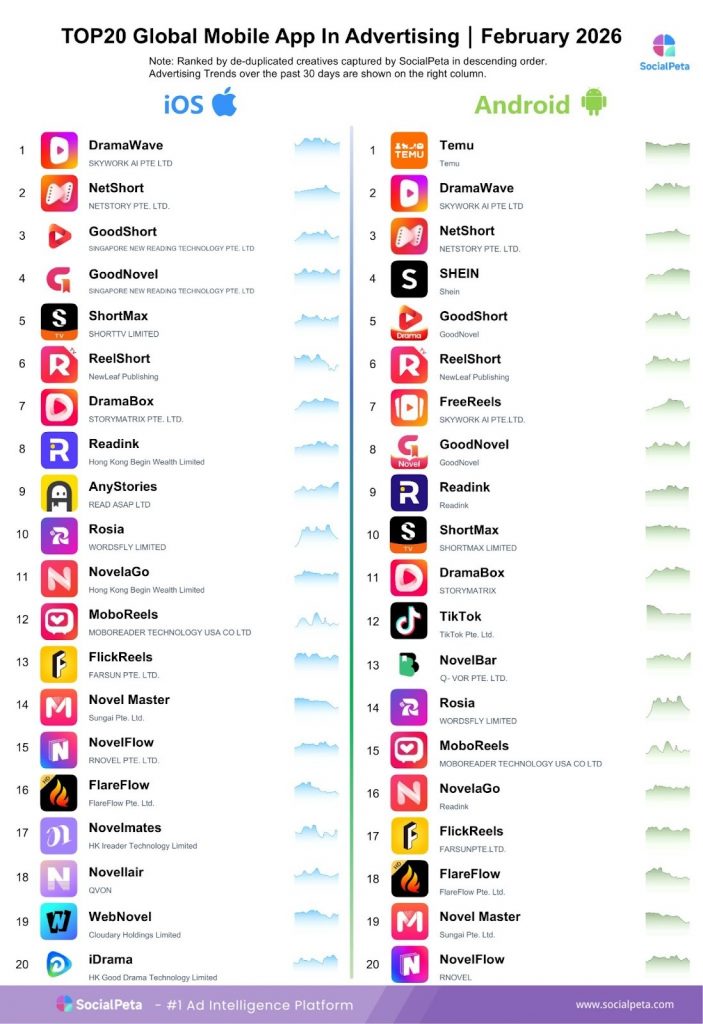 By analyzing February 2026 campaigns, SocialPeta highlights how leading publishers leverage ad creatives to maximize visibility, downloads, and user engagement—providing actionable insights for marketers aiming to refine their mobile advertising strategies.