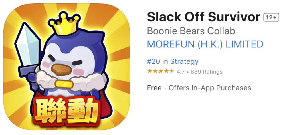 [Slack Off Survivor] is a cooperative tower defense survival game set in a frozen apocalypse, blending cooperative gameplay, roguelike elements, and PvP combat. Since its launch in Taiwan and Southeast Asia last November, it has consistently held a spot on the iOS ad charts. Last month, it finally broke into the top 20 of the global iOS ad rankings, maintaining strong momentum.
