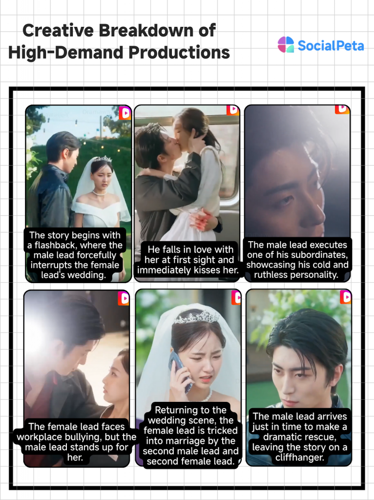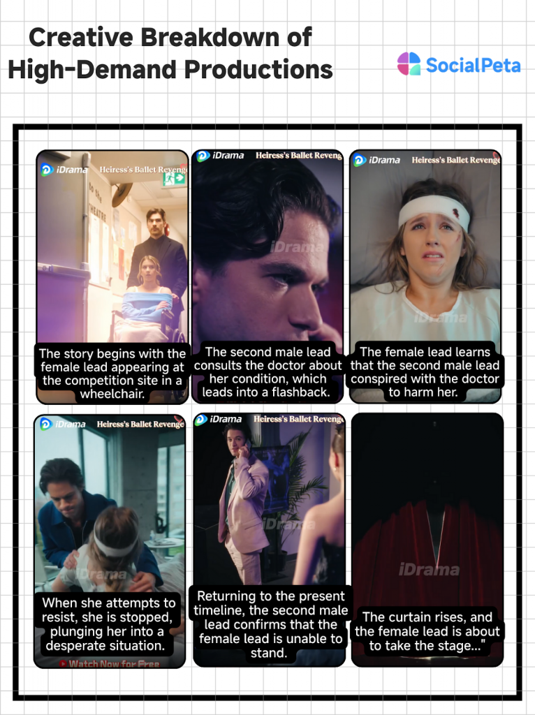 These trends echo what we see in leading campaigns analyzed in SocialPeta’s short drama ad creatives analysis, where emotional peaks and conflict-driven hooks are consistently prioritized in advertising creatives.