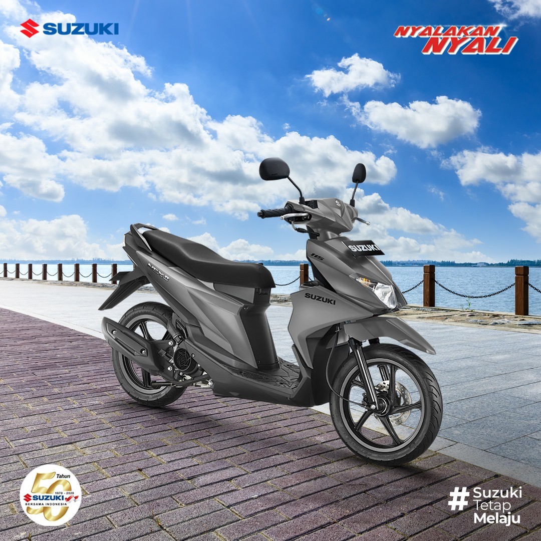 Mesin 115cc dengan teknologi Suzuki Eco Performance bikin konsumsi bensin lebih irit dan pembakaran lebih sempurna, dompet aman riding lebih nyaman.